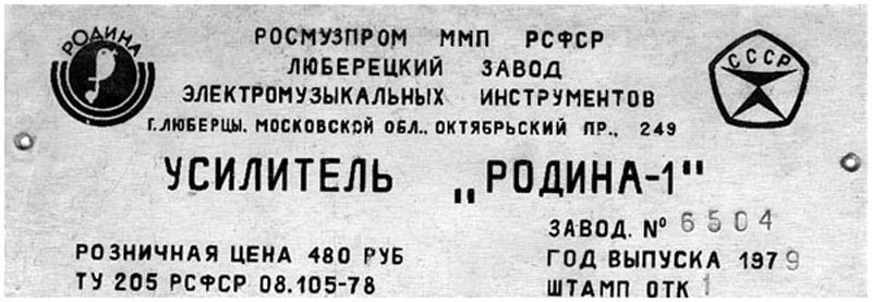 низкой частоты "Родина-1" с акустической системой "Родина-1" с 1979 года