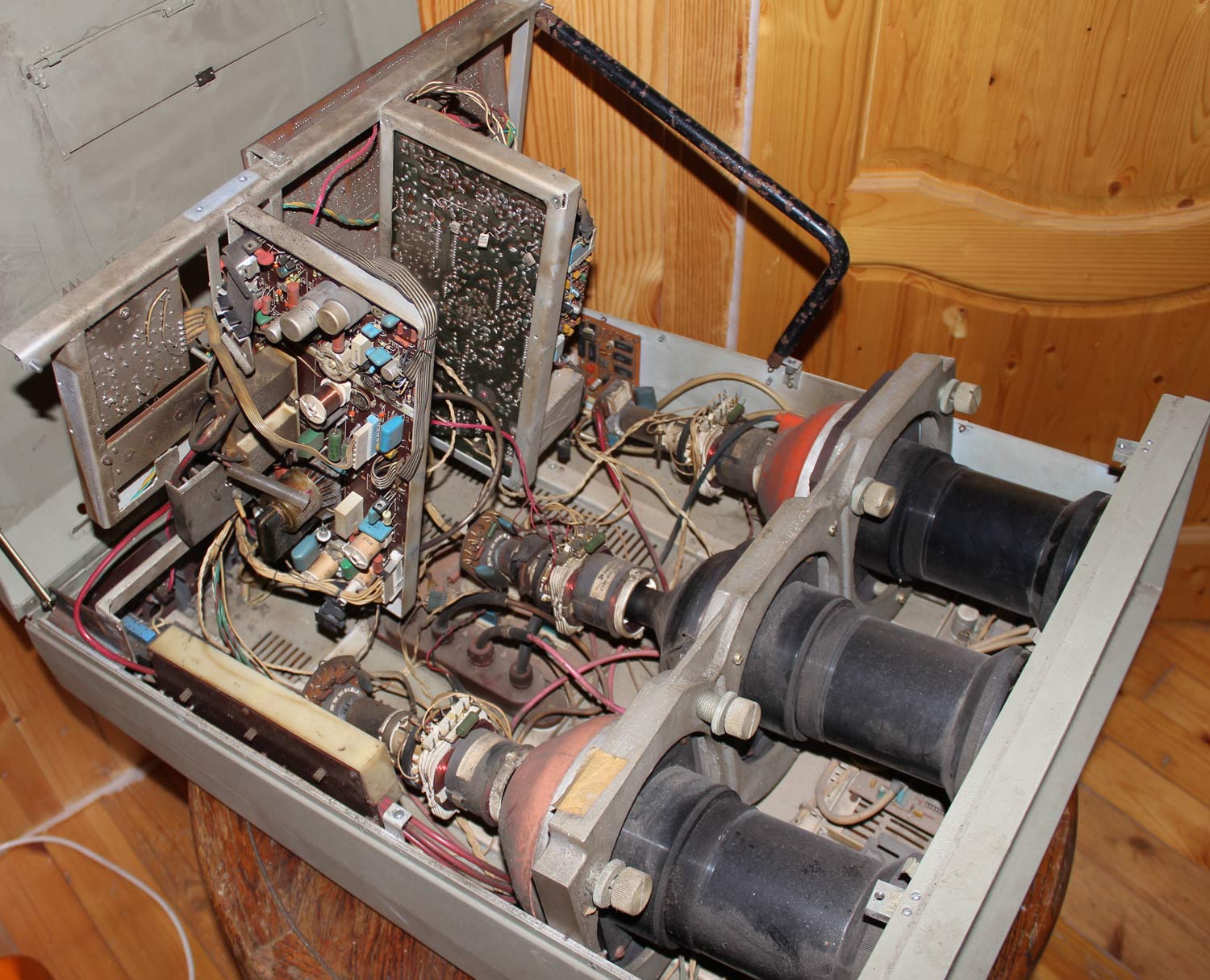 Собран видеопроектор на 3 кинескопах высокой яркости фирмы TESLA и схемотехнике