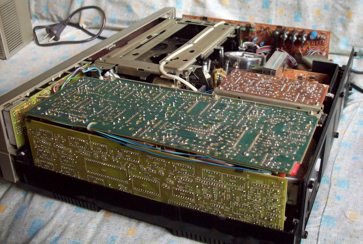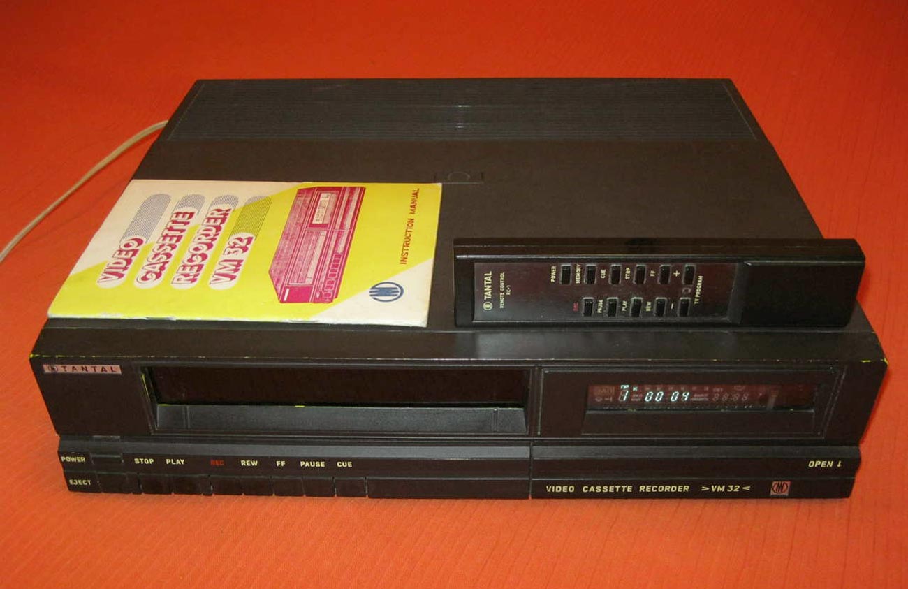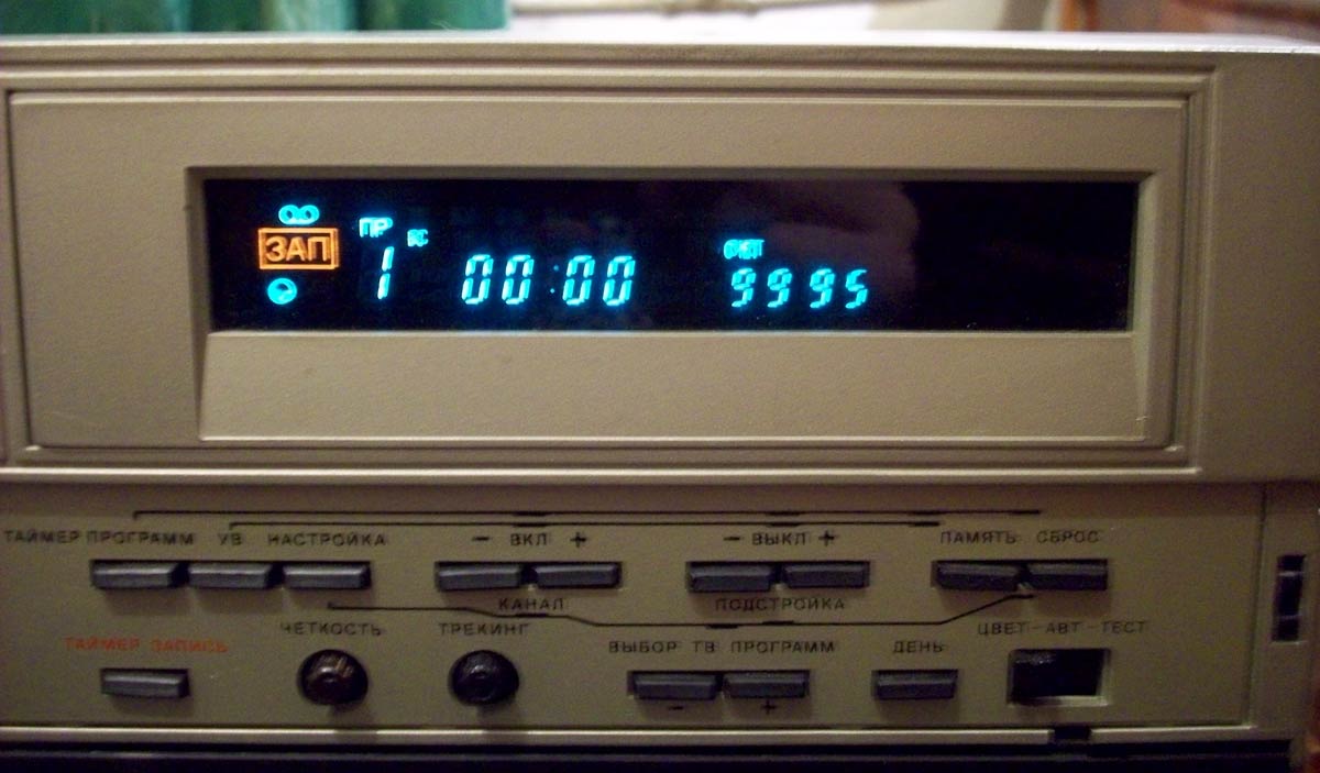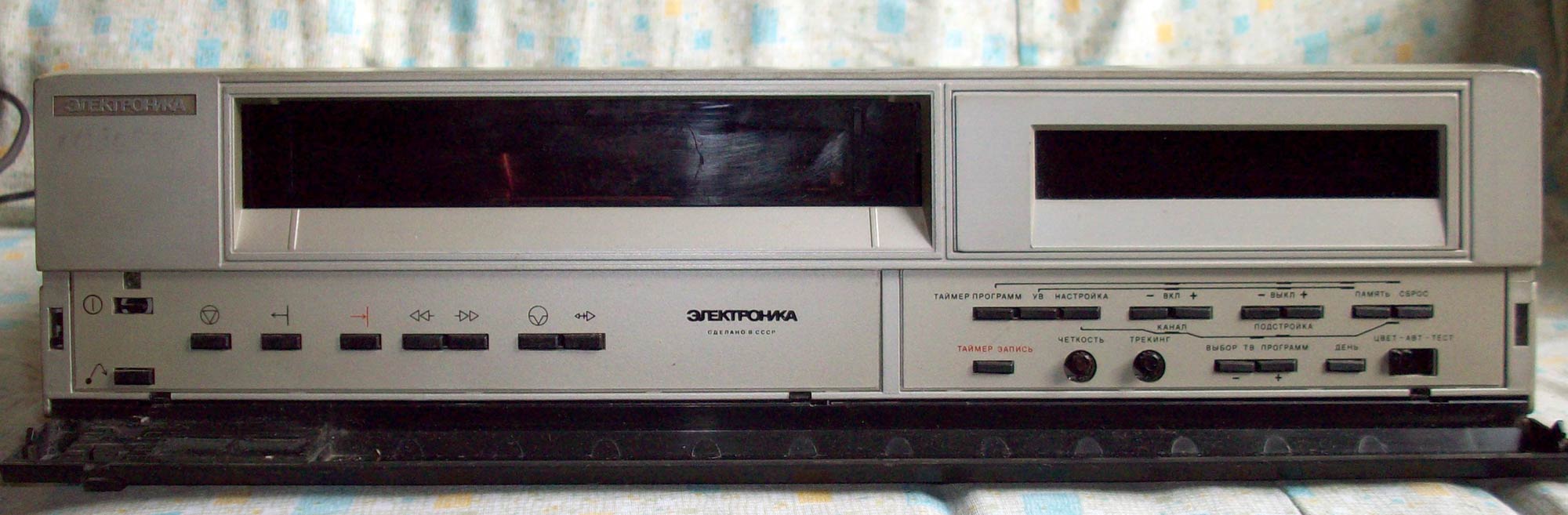 внешний вид видеомагнитофона, фронтальная загрузка кассеты, весьма большой