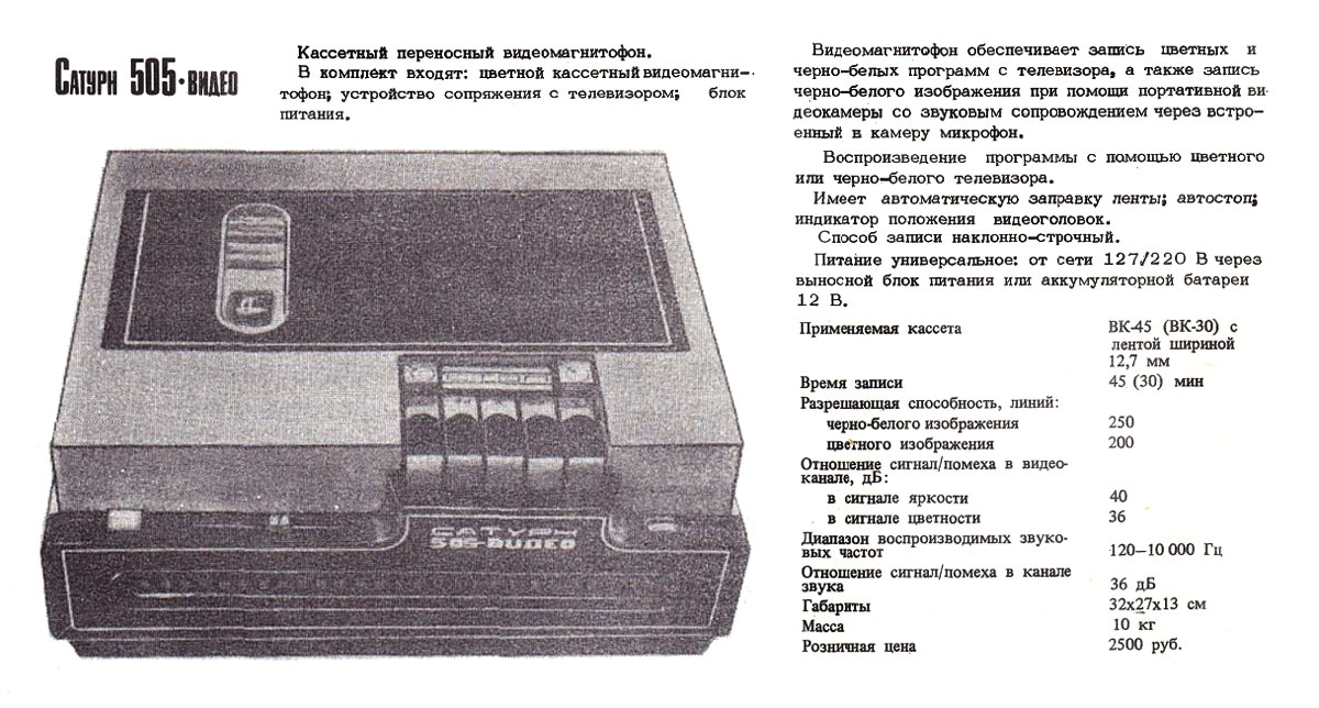 с 1979 года выпускал Раменский приборостроительный завод. Видеомагнитофон