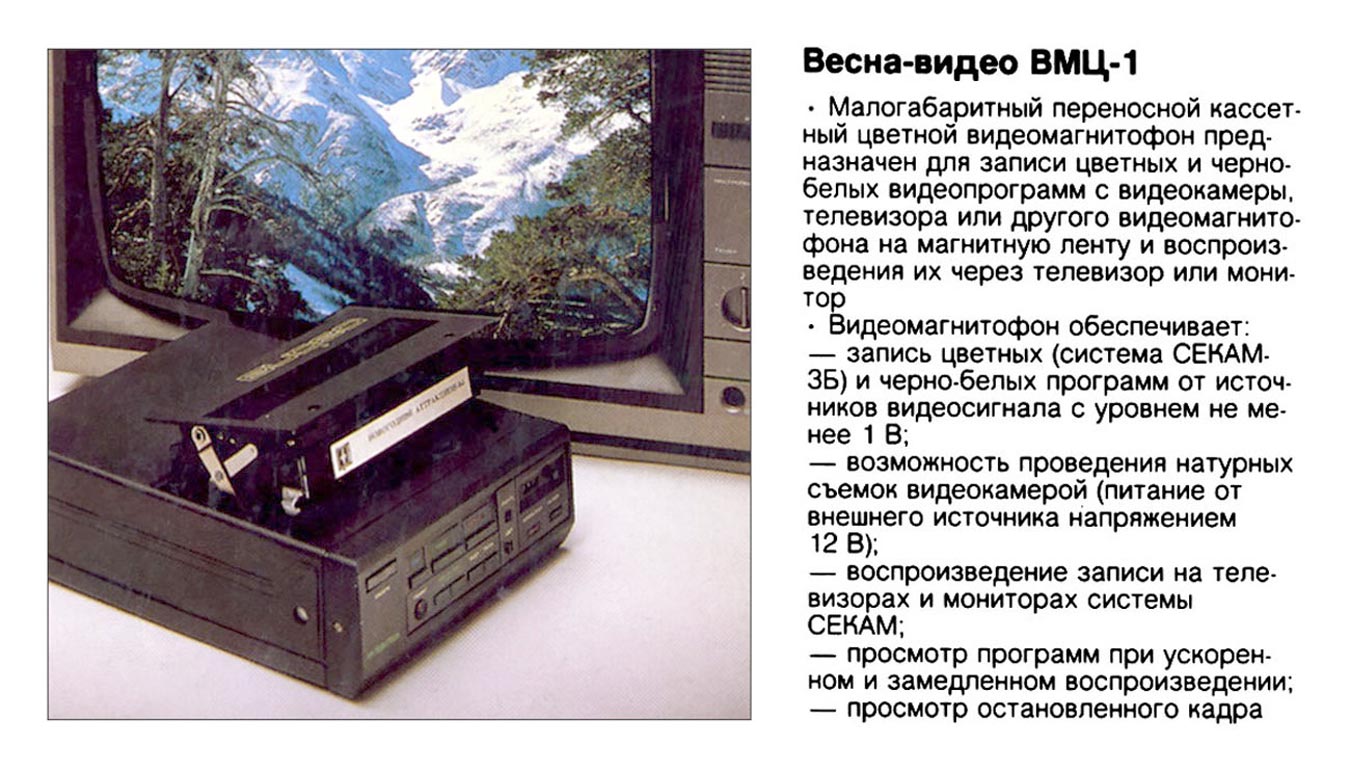 и "Panasonic NV-8420". Видеомагнитофон "Весна-видео ВМЦ-1" имеет облегчённую,