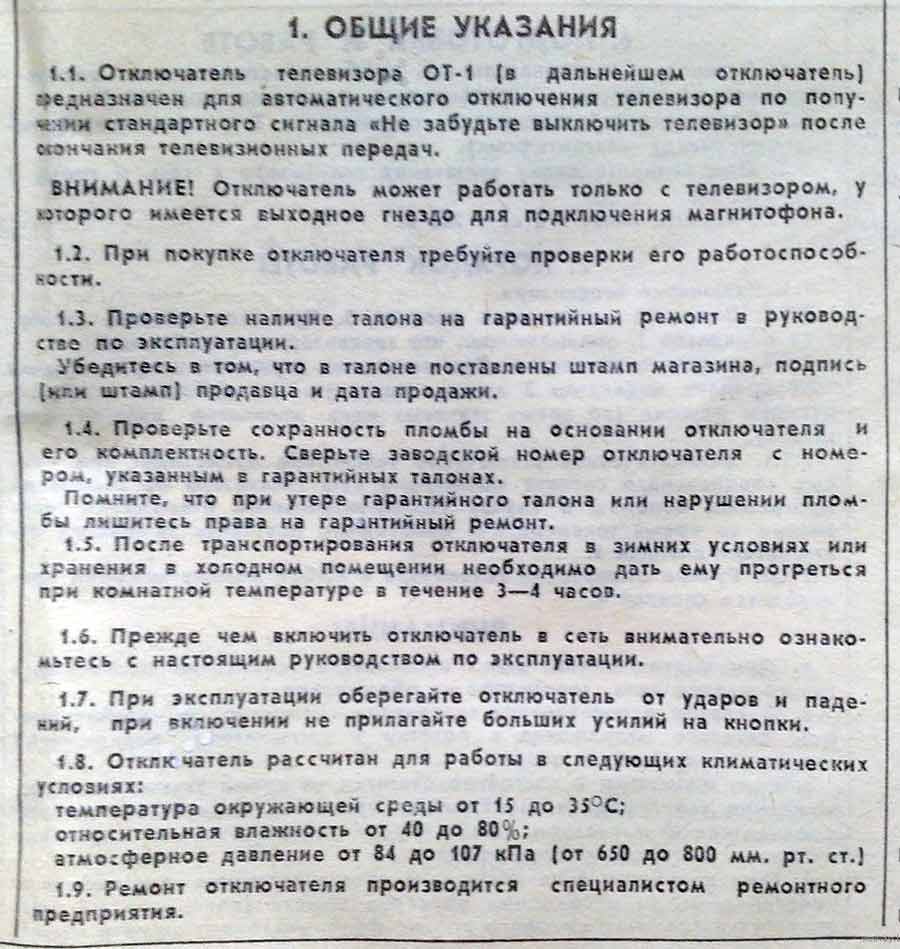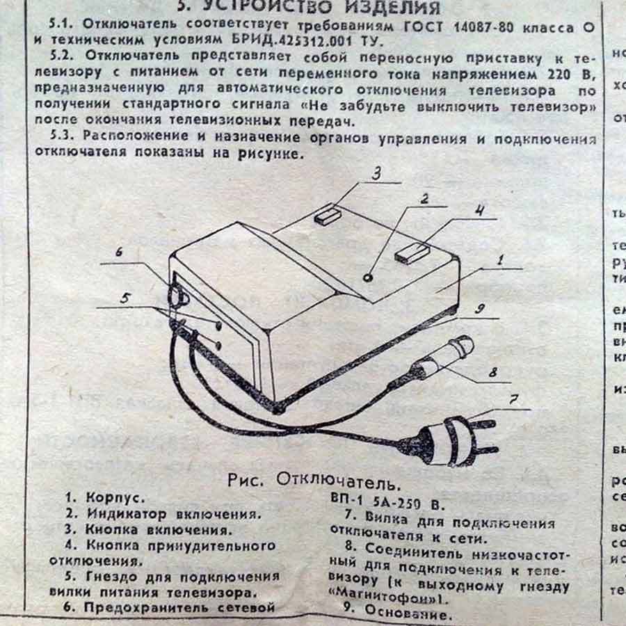 | Отключатель телевизора "ОТ-1" производился