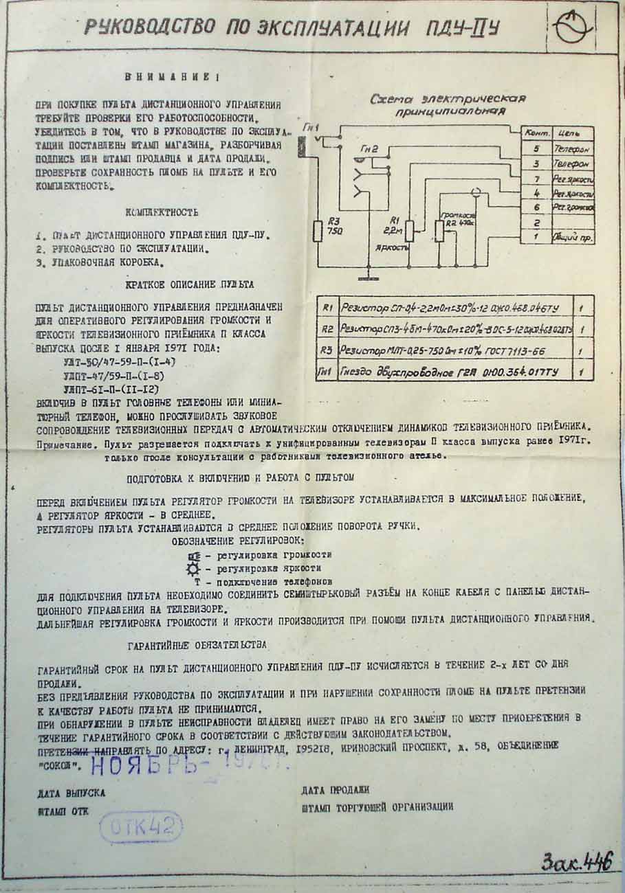 Пульт дистанционного управления "ПДУ-IIУ" выпускался предположительно с 1975 года Ленинградским заводом "Волна".